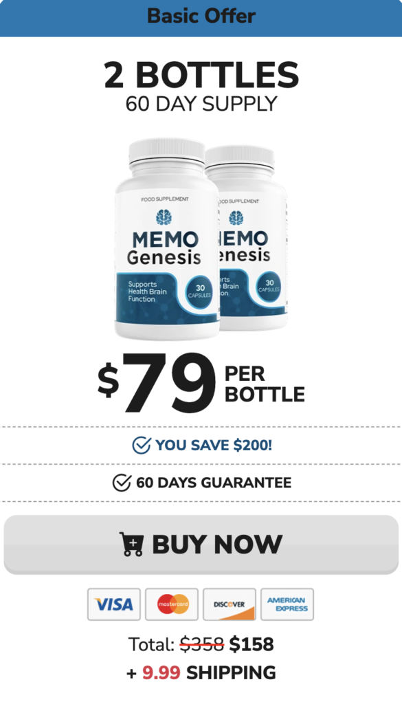 Try MemoGenesis today — a powerful, natural formula developed with 5 essential nutrients chosen to support brain performance, enhance memory, and help you regain mental clarity and focus.